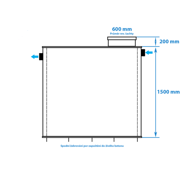 Retenční nádrž na dešťovou vodu 4m3 je zhotovena ze 2 stoprocentně vodotěsných plášťů. Zpravidla se tato nádrž na dešťovou vodu doporučuje do prostředí s jílovitou půdou či spodní vodou. Dvouplášťová retenční nádrž na dešťovou vodu se doporučuje usadit na základovou desku o tloušťce 10 – 20 cm. Pro zpevnění konstrukce retenční nádrže doporučujeme vyplnit meziplášť betonem. To zaručí, že se konstrukce dešťovky nezbortí a odolá spodní vodě nebo jílovité půdě.