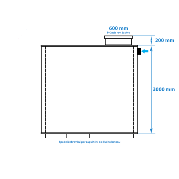 Tato samonosná jímka 15m3 je určena k přímému obsypání zeminou, avšak není vhodné samonosnou jímku umísťovat do míst s výskytem spodní vody, jelikož hrozí její zboření.