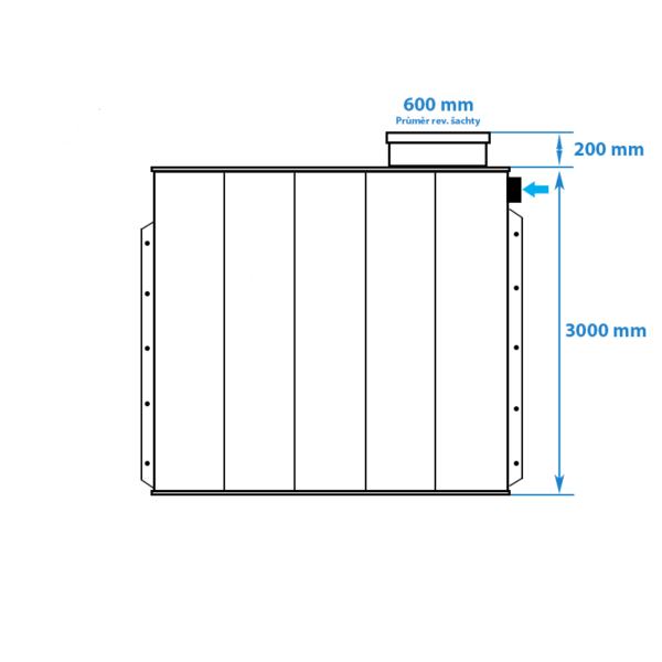 Jedná se o samonosnou jímku 2m3 hranatého tvaru, která není určena do míst s přítomností spodní vody nebo do míst se statickým zatížením. Tato hranatá samonosná jímka je připravena pro bezprostřední obsyp zeminou.