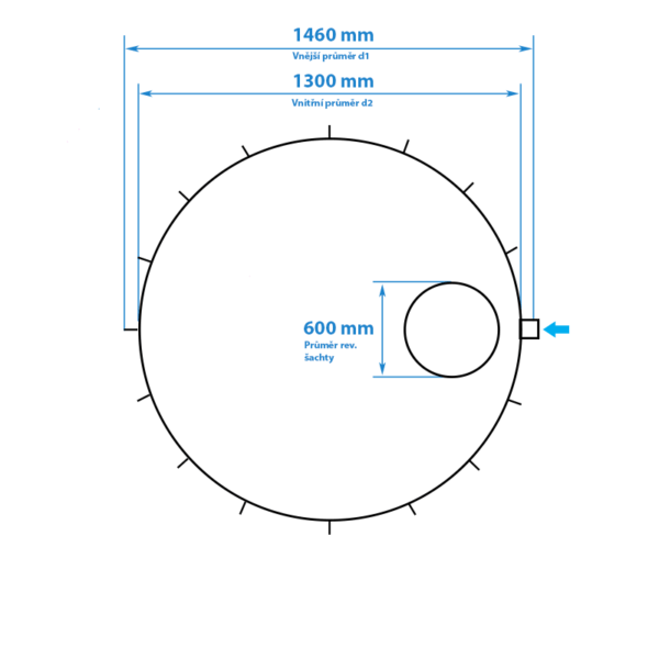 Vysoká odolnost vůči vnějším i vnitřním vlivům.Kruhová jímka k obetonování 2m3