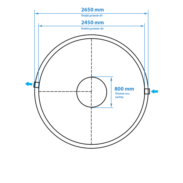 Tento kruhový dvouplášťový septik 8m3 tvoří dva 100% nepropustné pláště. Zpravidla se tento dvouplášťový septik používá v místech s přítomností spodní vody nebo jílovité půdy. Dvouplášťový kruhový septik doporučujeme usadit na základovou desku o tloušťce 10 – 20 cm. Prostor mezi plášti septiku se vyplňuje betonem, což zajistí zpevnění konstrukce, která se nezbortí a odolá tak jílovité půdě či spodní vodě.